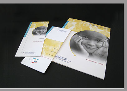Client: Lucile Packard Children Hospital The fund-raising campaign key brochure—Report to the Community— together with the subsidiary brochures introduce a contented young face on the cover, symbolizing hope and happiness for the future. (>) |